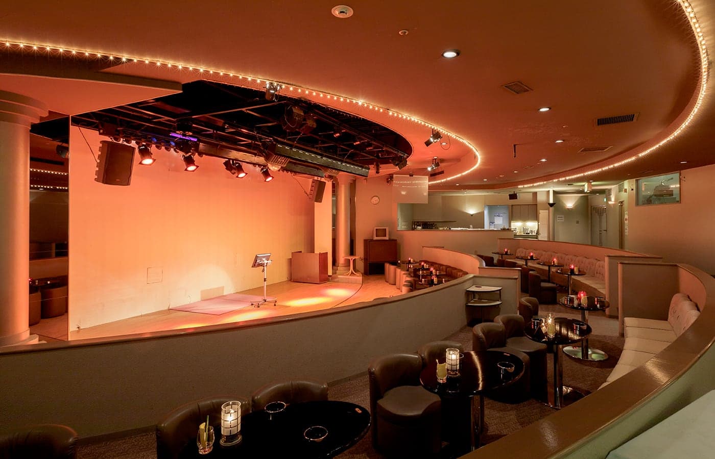 二次会処クラブ「クレセント」は総席約110席、大型ステージを 備えた本格的なクラブです。心行くまでカラオケをお楽しみください。