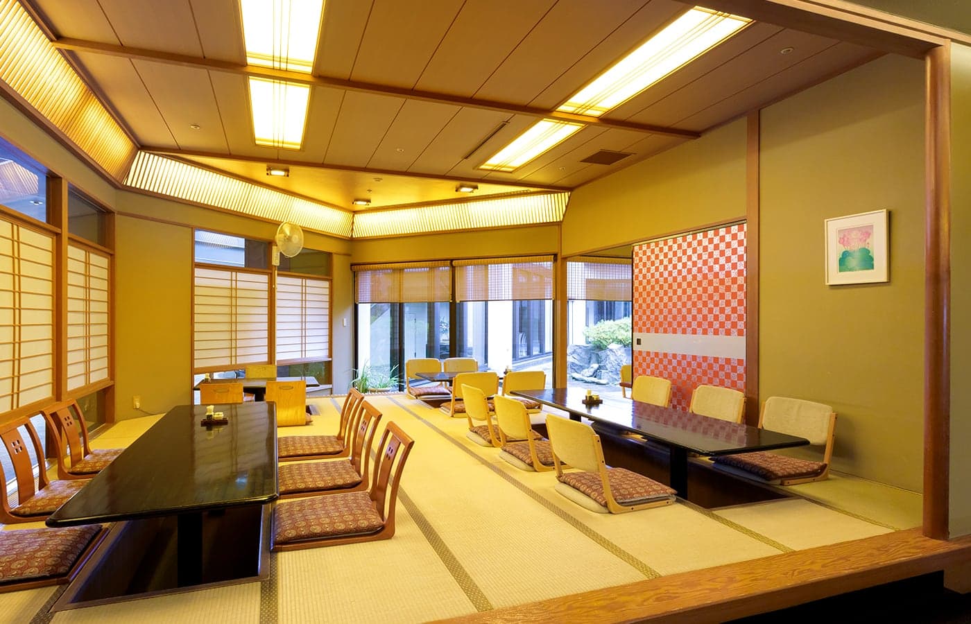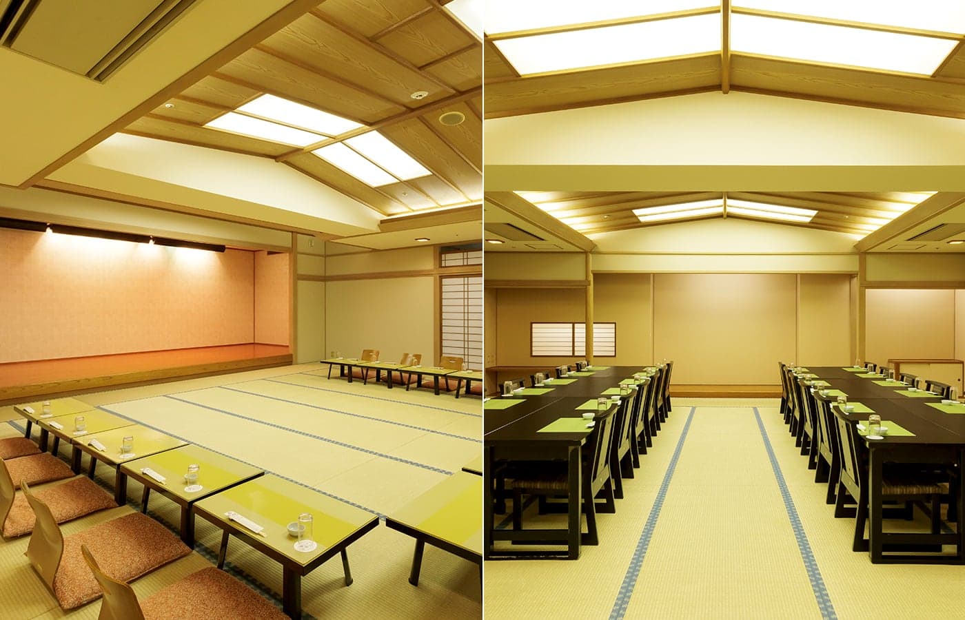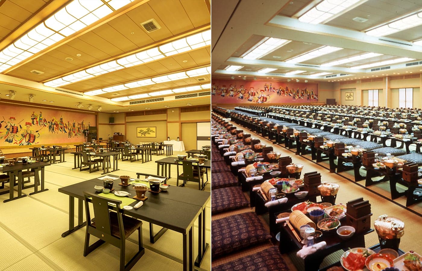 総畳数313畳の会場をスライディングウォールにより広さを自由に設定できます。(3分割)畳敷きの大宴会場で、座が盛り上がるなか、ゆったりした気分でご歓談、お食事をお楽しみいただけます。