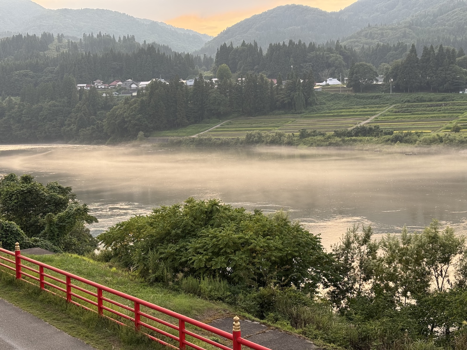 川霧夕方と朝両方見ました。朝5時のは本当に素晴らしかったです。川から盛り上がるような様子で山の方にもあり幻想的です。少なくはなりますが7時くらいまではありました。条件によるのでしょうが。
