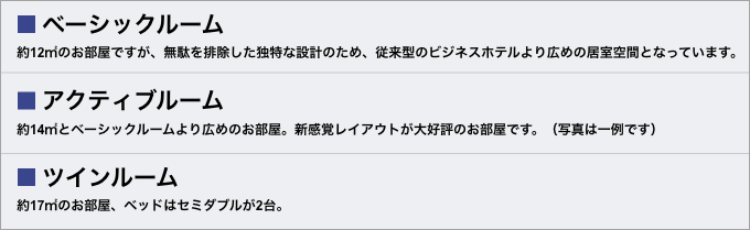 ホテルアクティブ!博多 客室のご案内