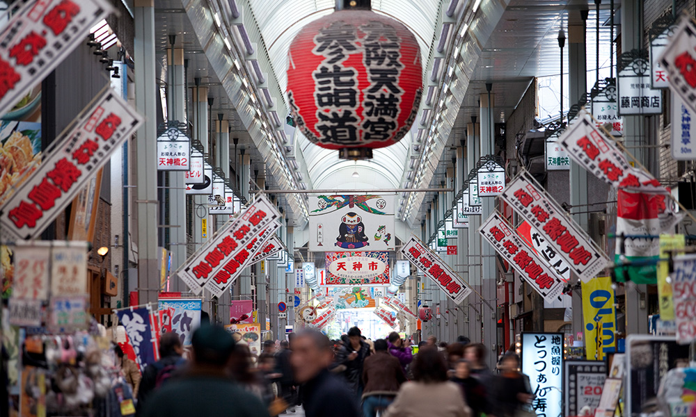 日本一長いと言われる商店街で、南は天神橋から北は天神橋筋七丁目まで、約2.6㎞の長さを誇ります。昔ながらの食堂や惣菜店をはじめ、お茶や豆腐や雑貨など多種多様な600店が軒を連ねます。