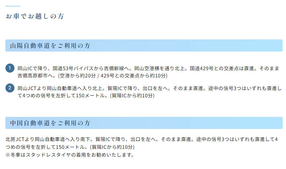 吉備高原リゾートホテル アクセス