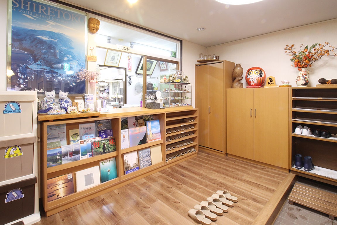 JR知床斜里駅より車で約40分、斜里バス「ウトロ入口」徒歩30秒、ウトロトンネルを抜けて左手すぐの看板「民宿石山」が目印