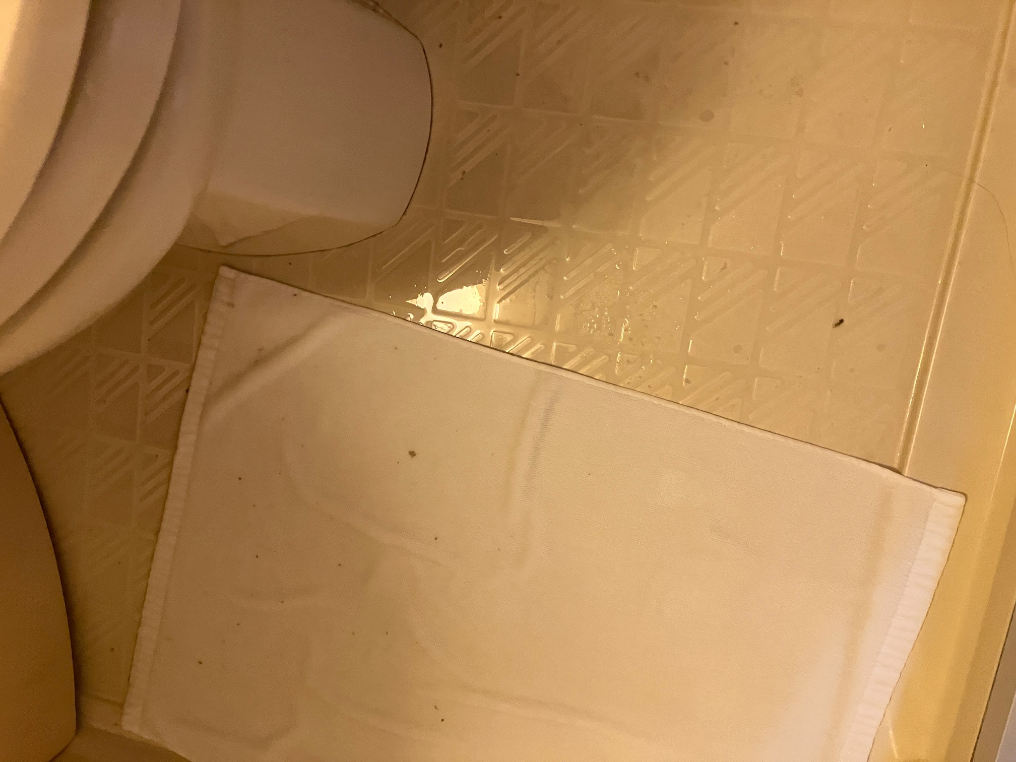 風呂から水が漏れてユニットバス内床が高さ3センチほど浸水。ベッドのほうにまで漏れ出た。