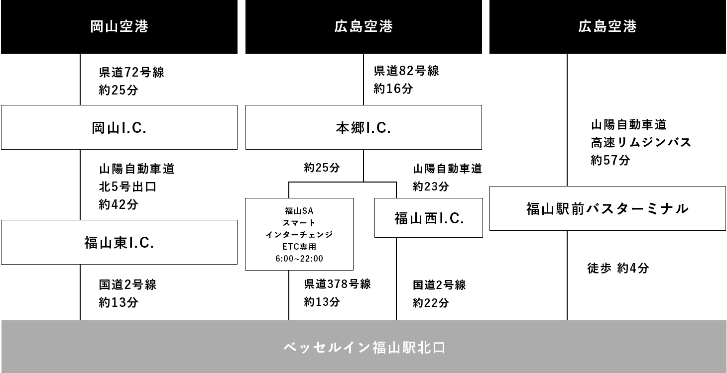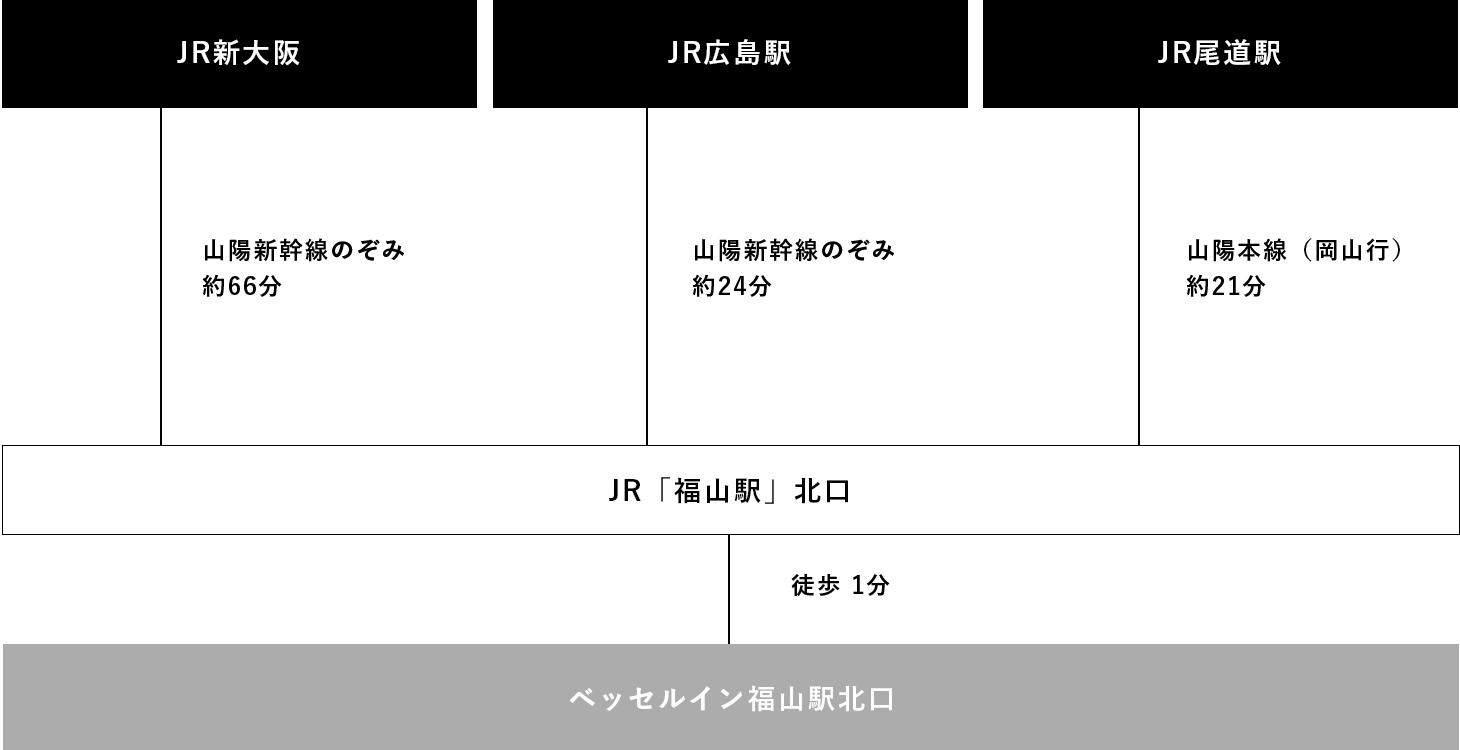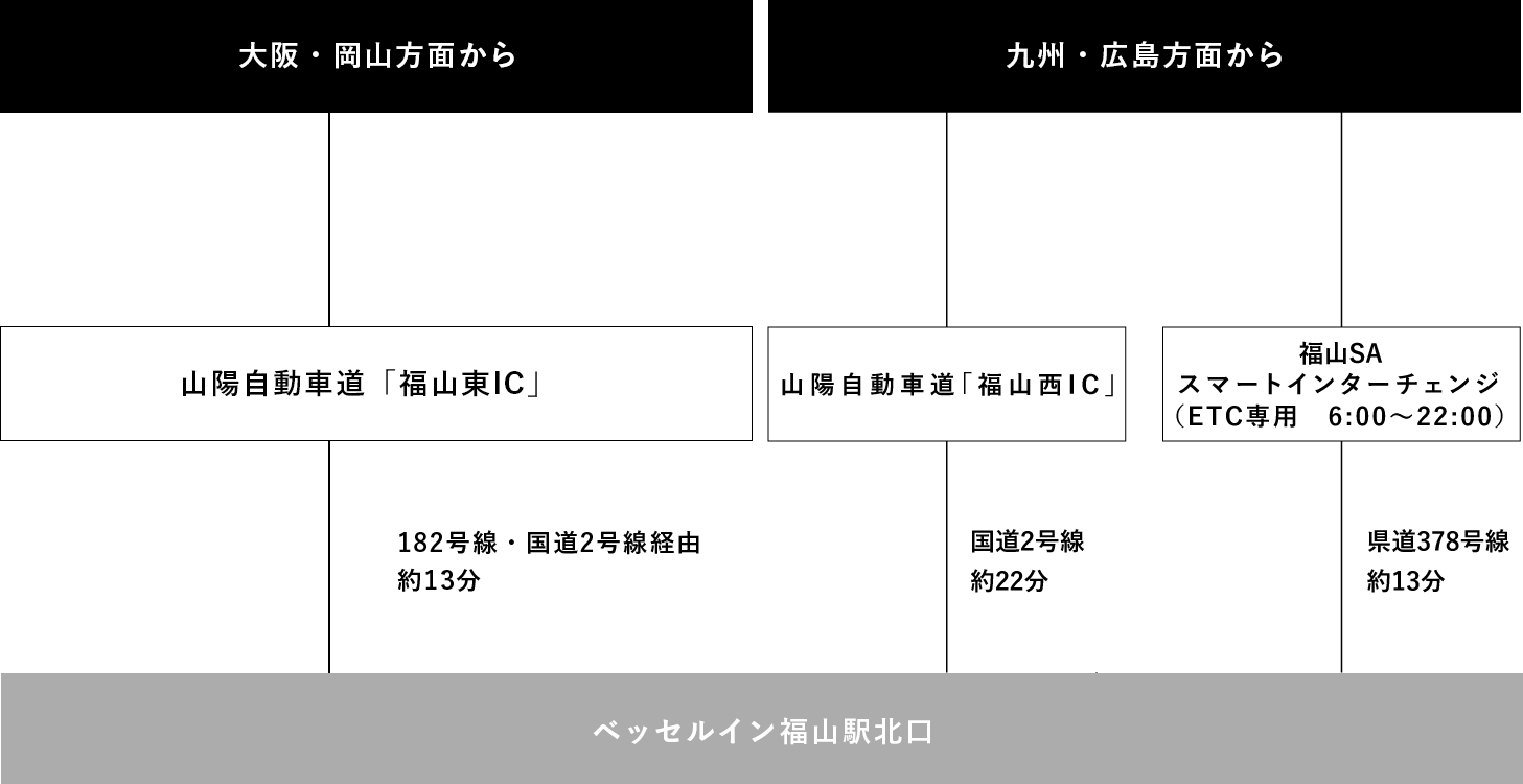 ※大型車は福山ニューキャッスルホテル(徒歩3分)で駐車可能です。事前に予約が必要ですので、フロントにお問い合わせください。(TEL. 084-991-1000)