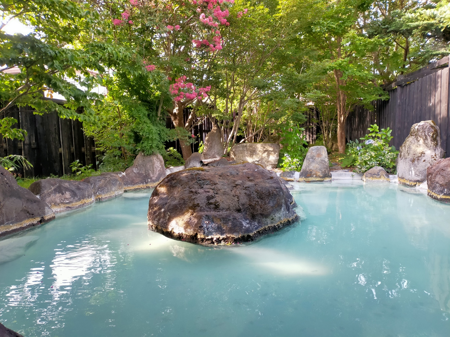 泉質は強酸性で、かき混ぜると白濁になり濃厚な硫黄泉が楽しめます。露天風呂は『庭園露天風呂』なので、多少落ち葉や枝が沈んでいるのは仕方ないかなと。それから、白濁しているので配置されている岩で転んだり手足を切らないよう注意して下さい。気になる人は内湯のみでも、温泉は十分楽しめるかと思います。- 旅行の目的