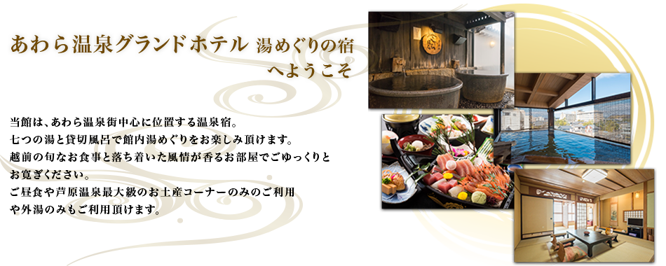 車で北陸道金津ICより15分/JR芦原温泉駅より10分 (送迎無料:要予約) /金沢より60分/小松空港より50分