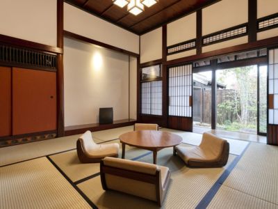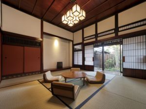 広さ70平米のお部屋です。座敷に面して1階客室専用の中庭があり、お風呂からも景色を楽しめます。