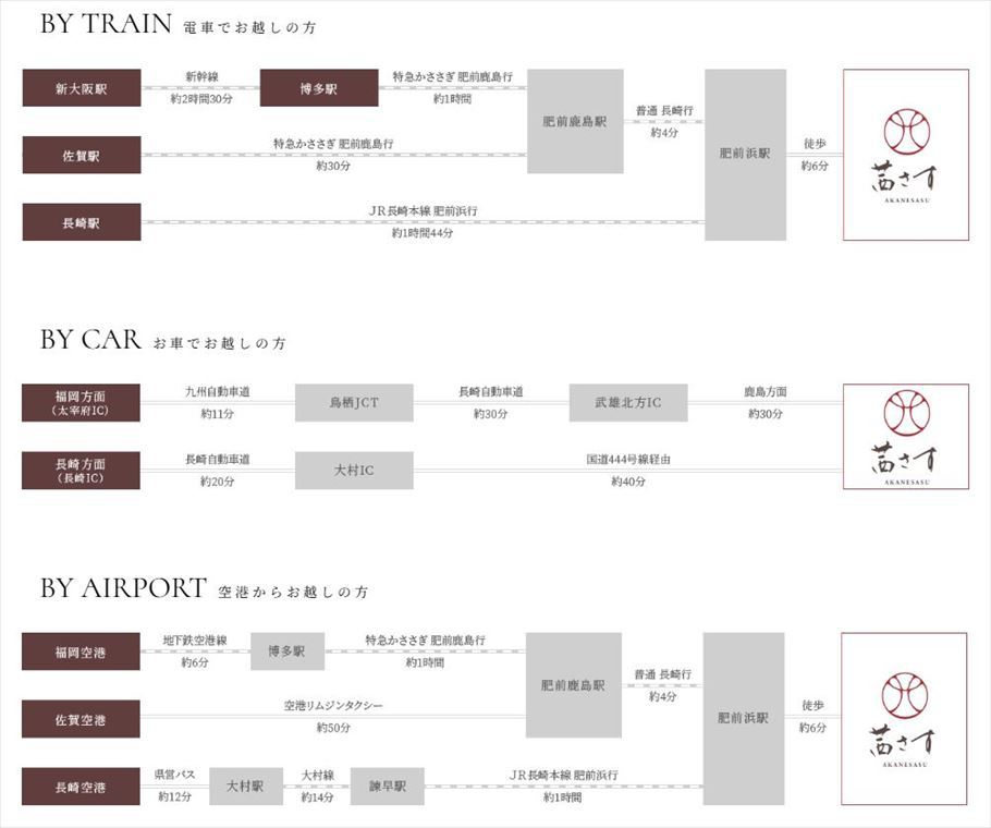 肥前浜駅より徒歩にて約6分、九州佐賀国際空港より車で約1時間