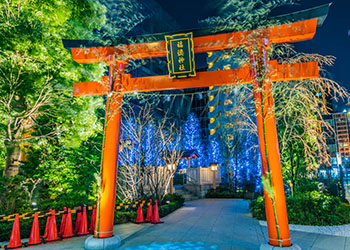 貞観年間(859~876年)には既に鎮座していたと言われ、徳川家康・秀忠も参詣していました。また江戸時代には富くじの発行が許可された数少ない寺社の一つだったことから、宝くじ当選のご利益があるとされています。
