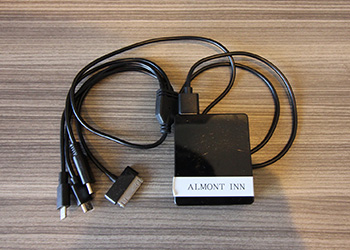 3つの充電口が付いた、マルチ携帯充電器をご用意致しております。