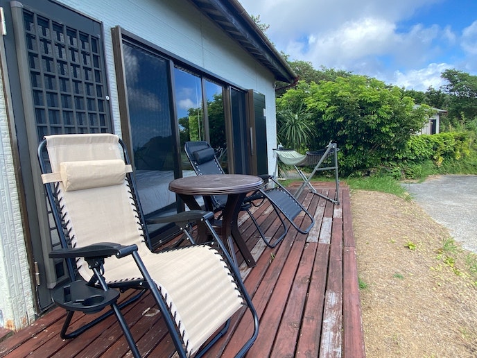 ・【テラス】リクライニングチェアやハンモックに身を預けて自然と一体に!
