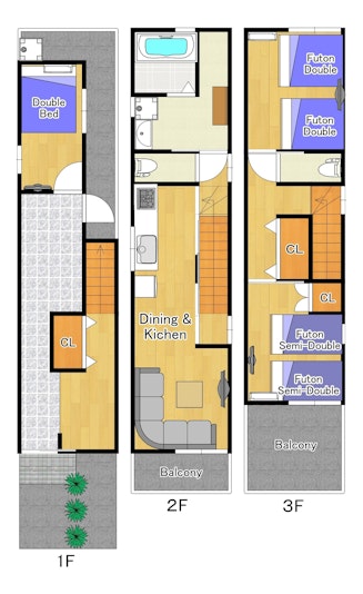貸し切り3階建の宿泊施設になります。