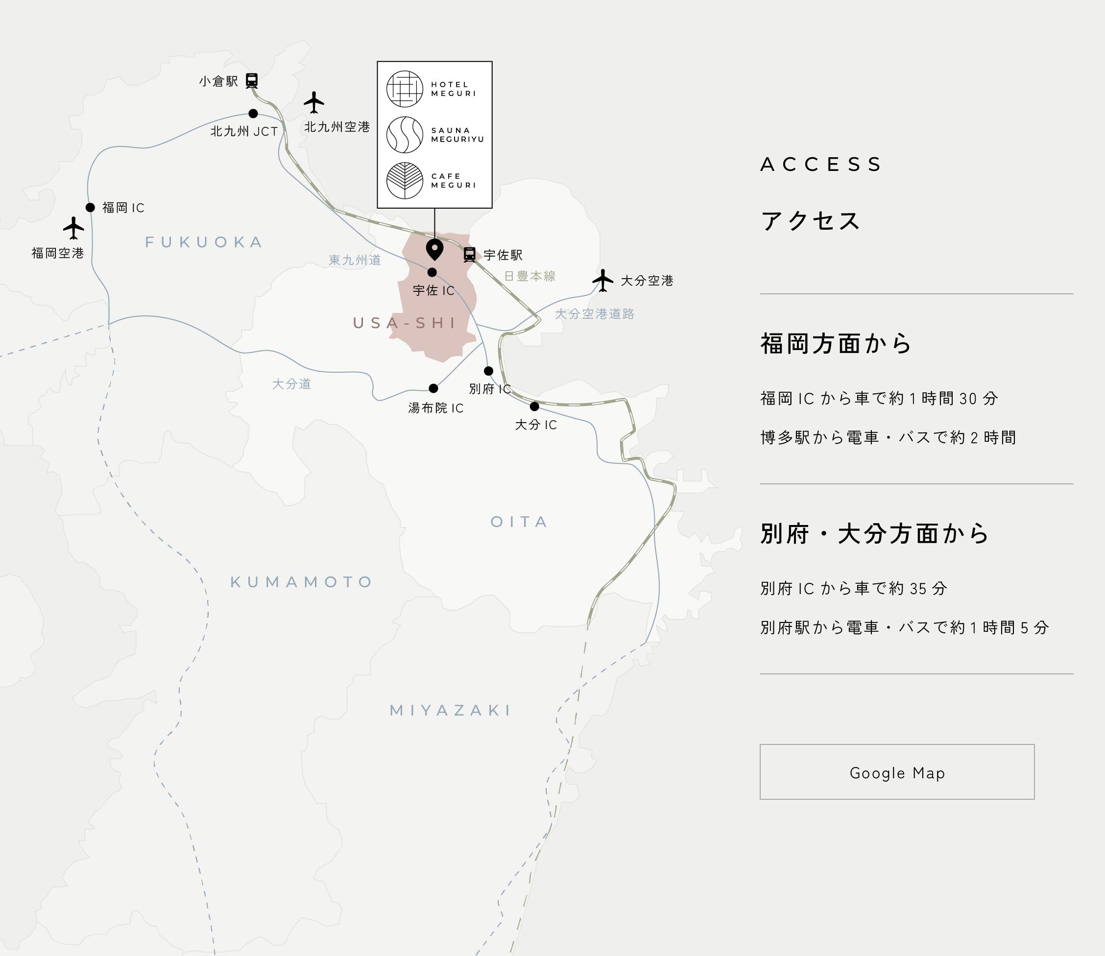 柳ヶ浦駅よりお車で約10分、宇佐ICよりお車で約7分