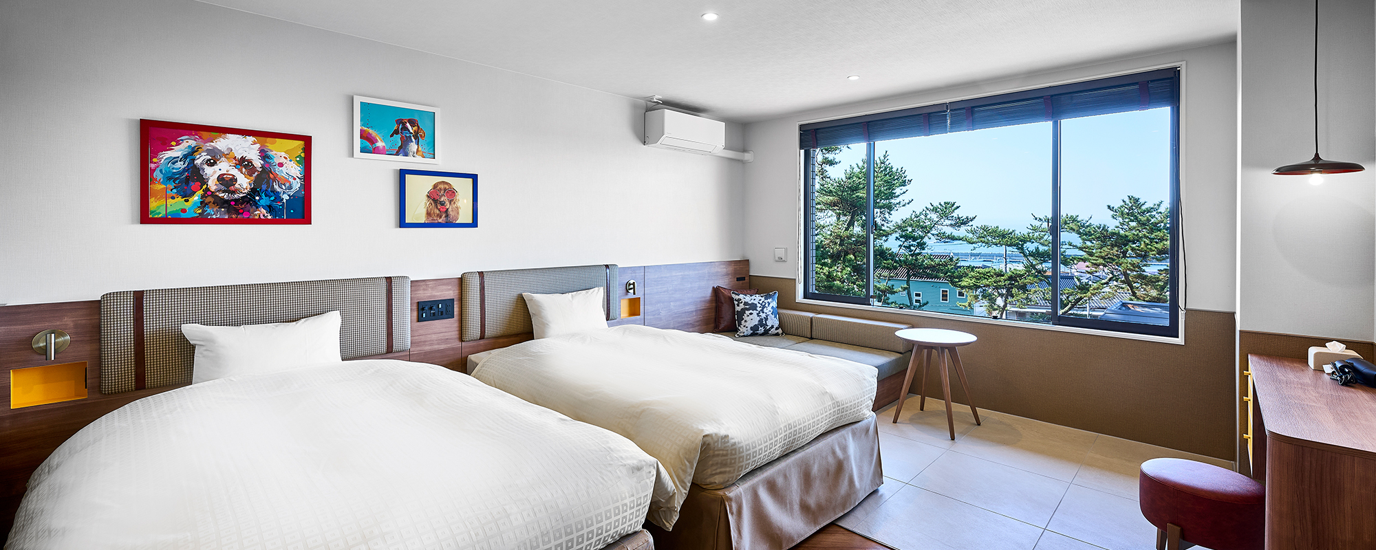 ゆったりとご利用いただけ、ワンちゃんがベッドでお休みいただけるお部屋としてもご利用可能です。