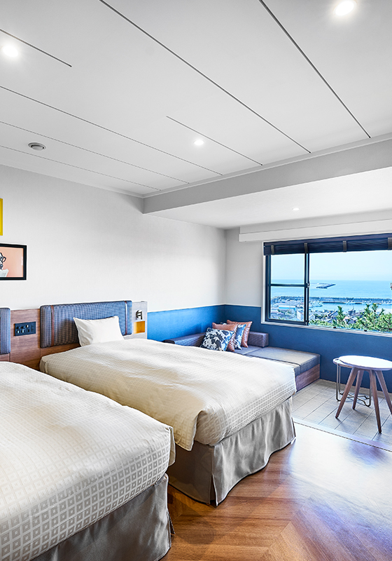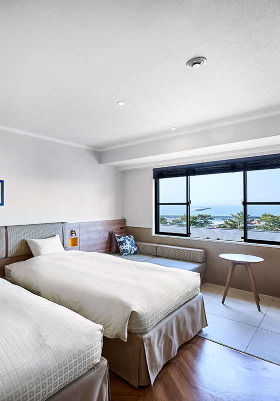 3Fに位置する全部屋から大洗の海をご覧いただけるお部屋となります。様々な時間帯の夜景も楽しんでいただけるお部屋となり、最大3名様までご宿泊いただけます。ガーデンビューとの違いについては、特別なご宿泊特典がございます。(特典内容は季節によって異なります、お気軽にお問い合わせください。)
