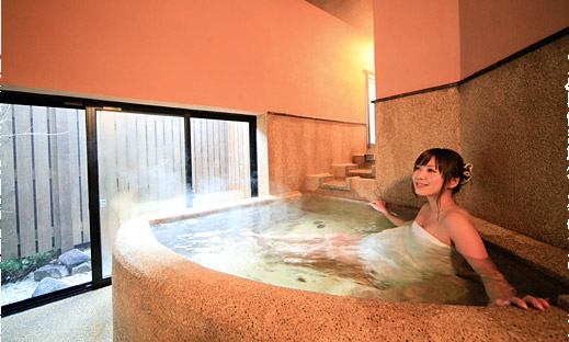 純アルカリ性単純泉+活性石温泉と、薬石浴『嵐の湯』をご利用いただけます。