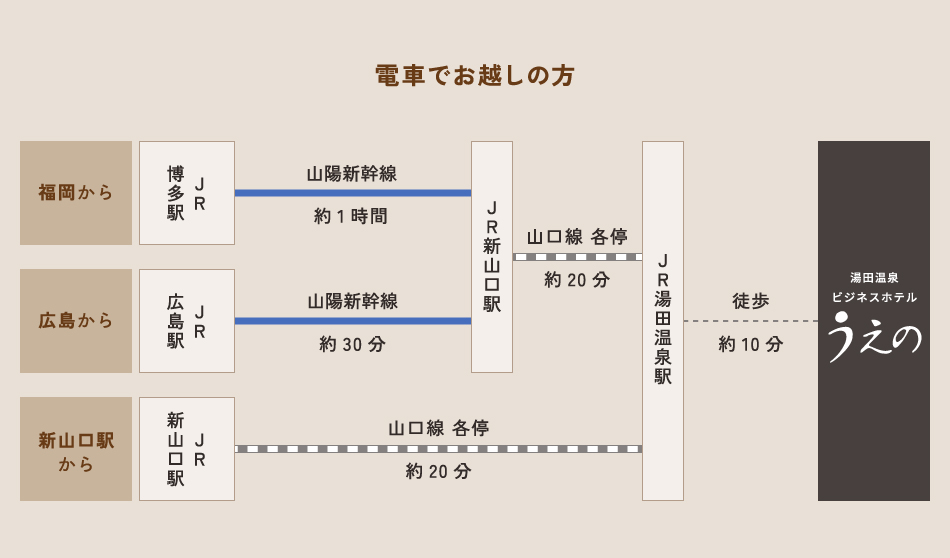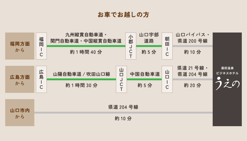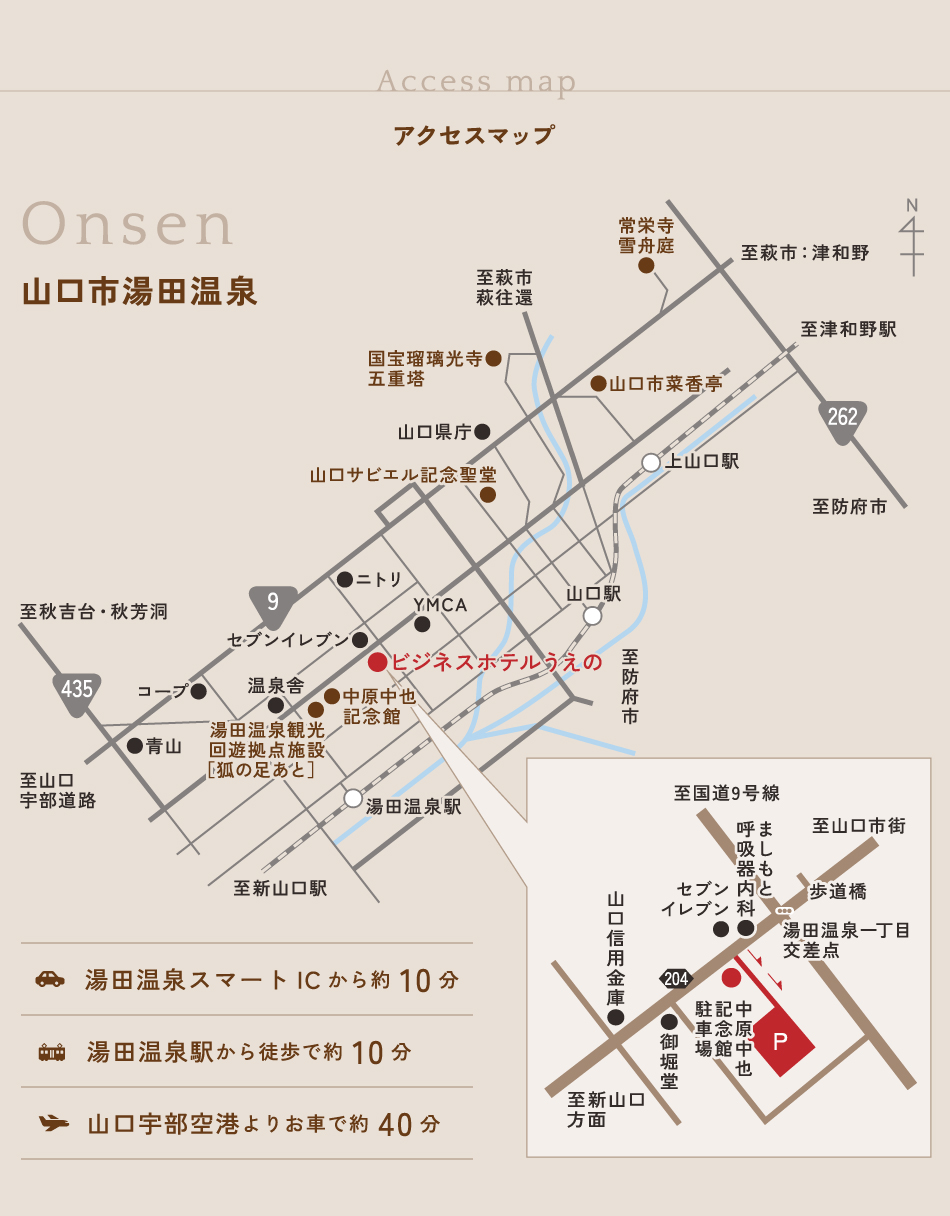 湯田温泉 ビジネスホテル うえの<山口県> アクセス