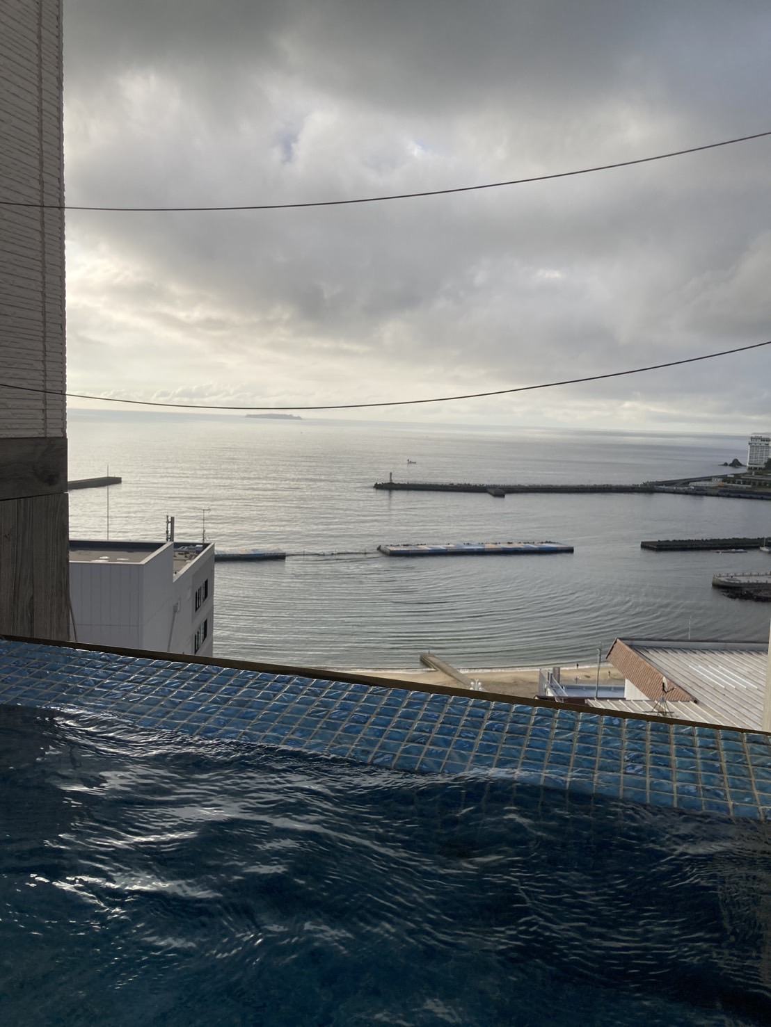 貸切で利用できる屋上露天風呂は、海と朝日が綺麗に見え、熱さもほどよく温泉が満喫できました。
