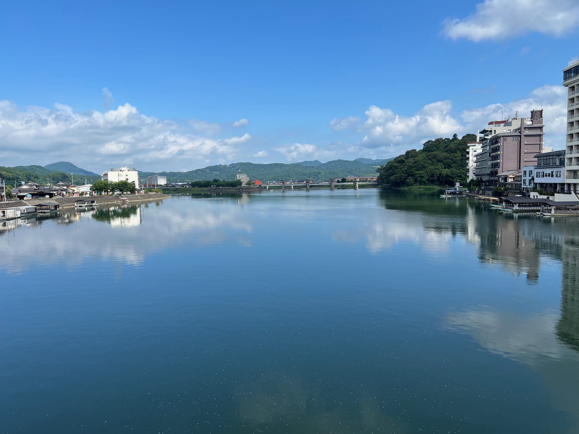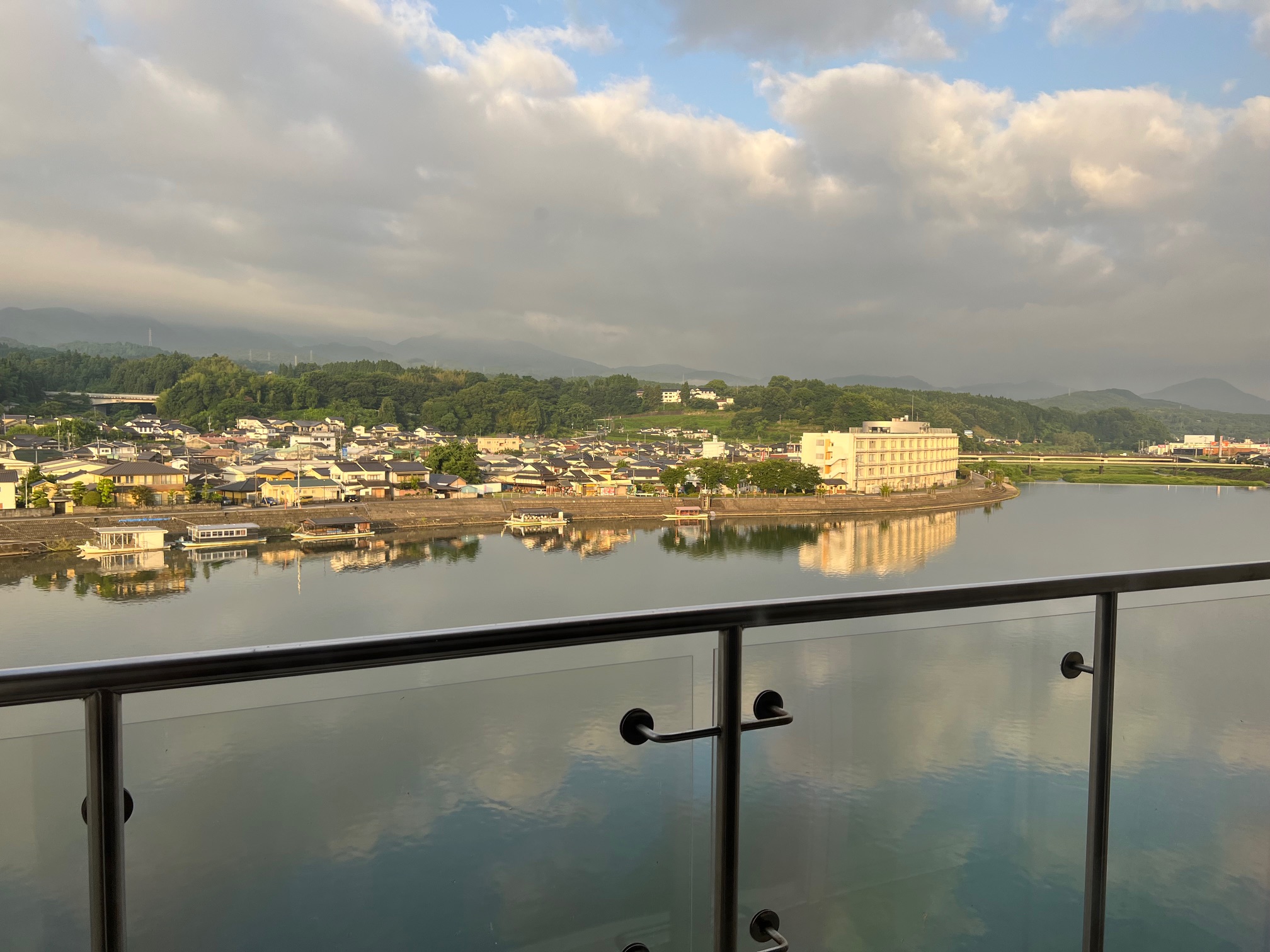駅からもタクシーワンメーターくらいと近くて便利。部屋は5階の川側で、部屋からは川一望。これは素敵でした。夜は鵜飼いで船も出ていましたし、三隈川沿いの風景はとても美しく、感動しました。展望風呂からの眺めも素敵でした。また、朝ごはん、それほど期待していなかったのですが、想像をはるかに上回る充実ぶりで美味しくいただきました。帰りには車で駅まで送ってもいただき、とても助かりました。仕事で偶然日田に行くことになったのですが、改めて観光で来てみたいと思いました。その節はまた、よろしくお願いします。