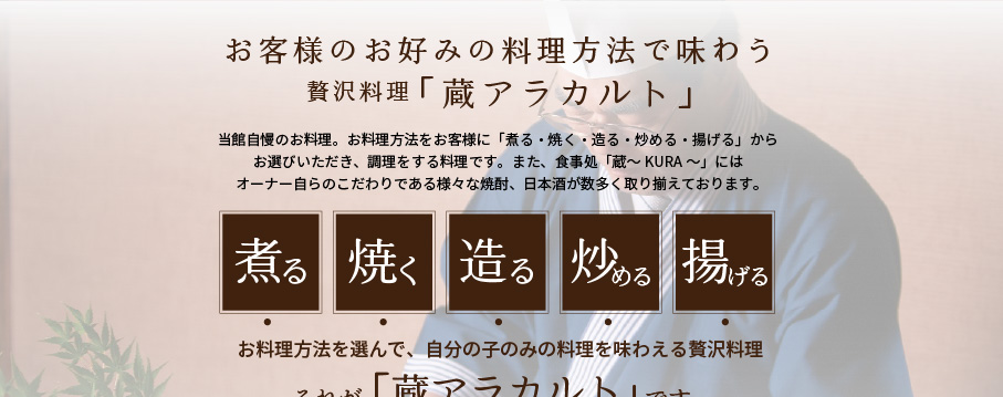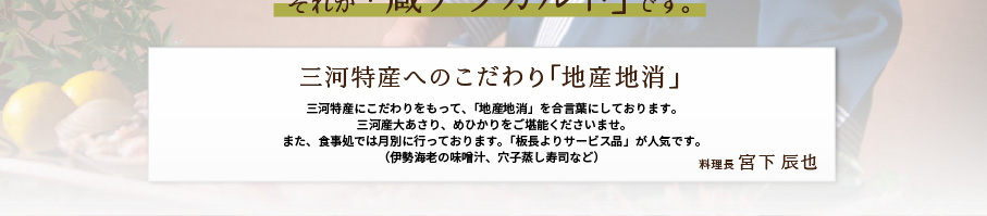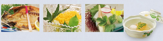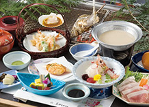 味合わせの達人「宮下料理長」がすべての技と厳選素材を駆使した料理。味のハーモニーに舌鼓をうつこと間違いなし。 |