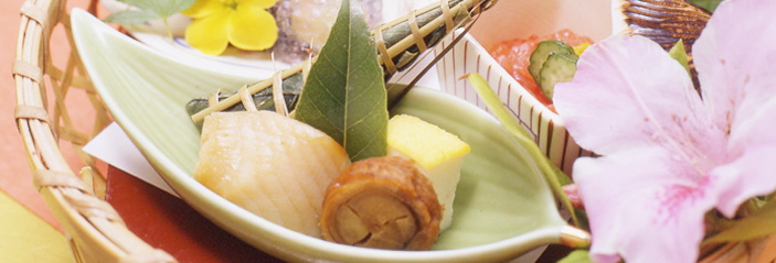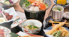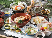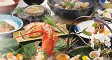 あわび、伊勢海老 海の幸をふんだんに使用した「板長おまかせ創作料理」です。当館一番人気の料理をご賞味くださいませ。 |