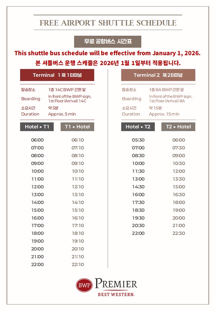 - 仁川国際空港からホテル無料シャトルバスで約5分。