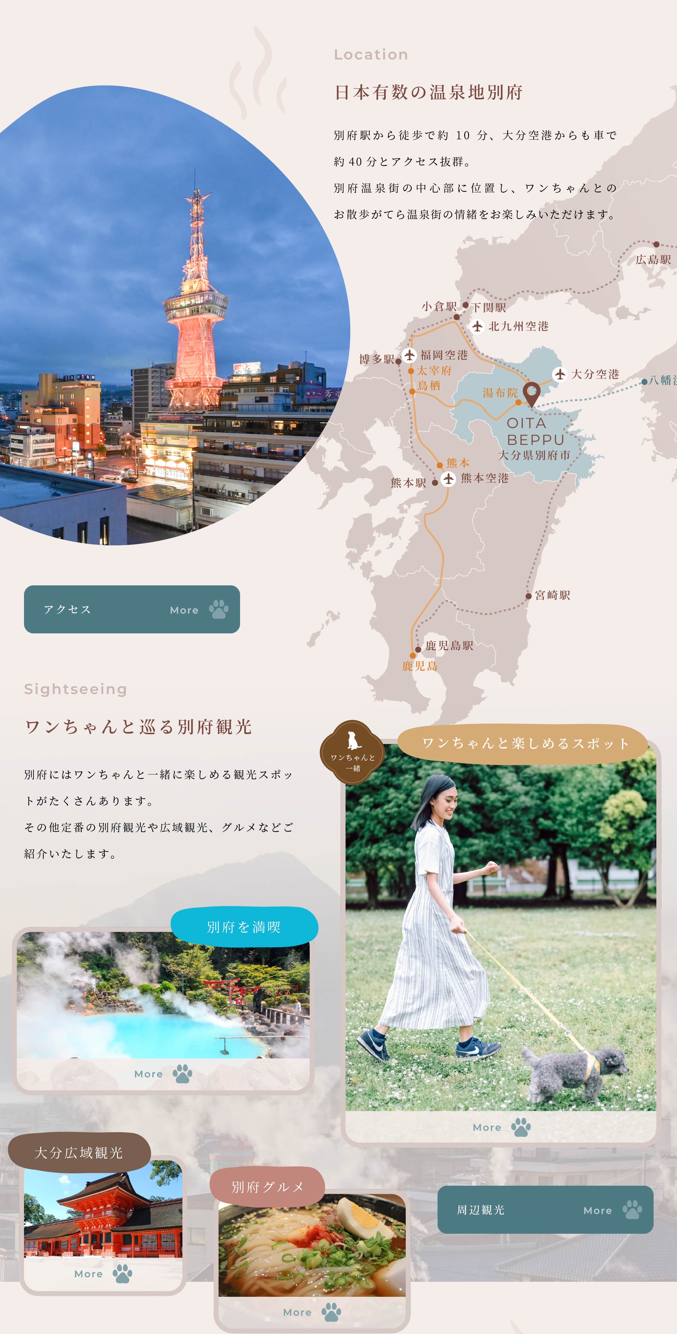 別府駅から徒歩10分、北浜バス停(福岡からの高速バス降り口)から2分
