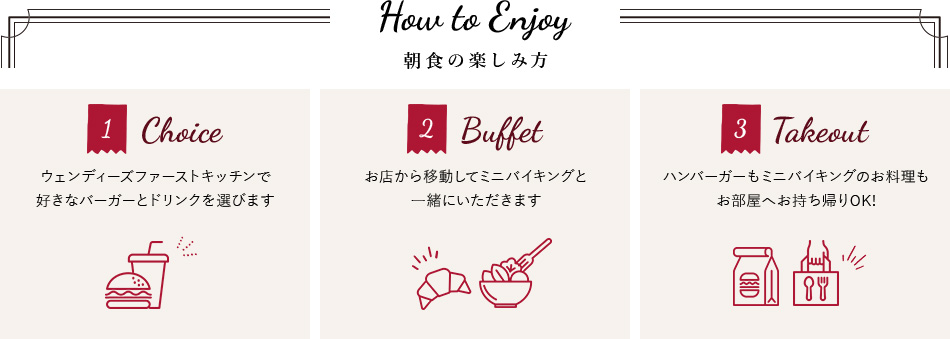 当ホテルオリジナルのアメリカンブレックファーストスタイルをご提供しております。