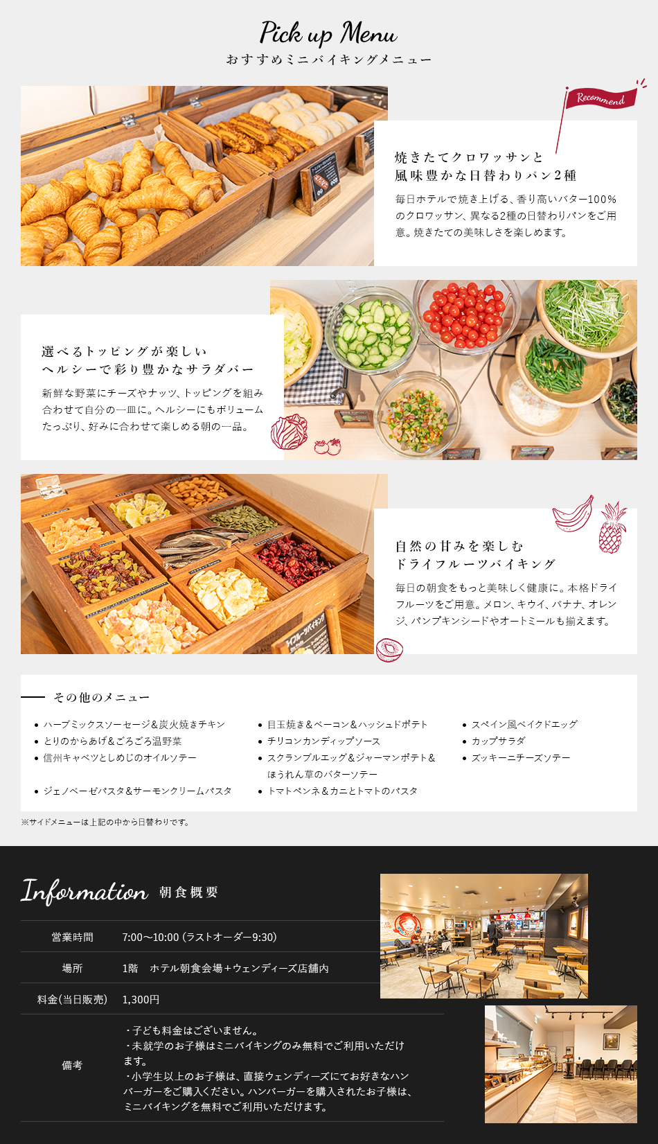 どうしてもご飯類がご希望のかたは、姉妹ホテル「ホテルナガノベニュー」の自慢の和洋食バイキングをご利用ください。