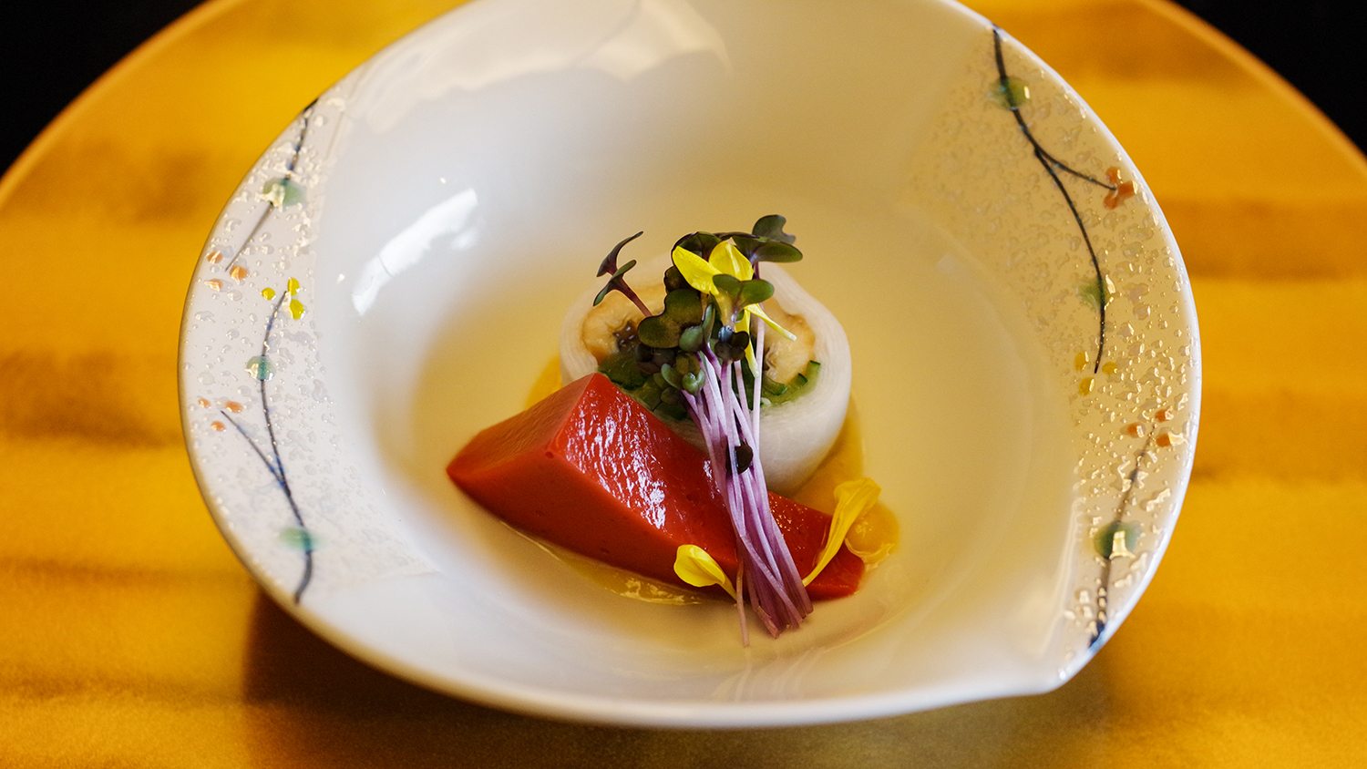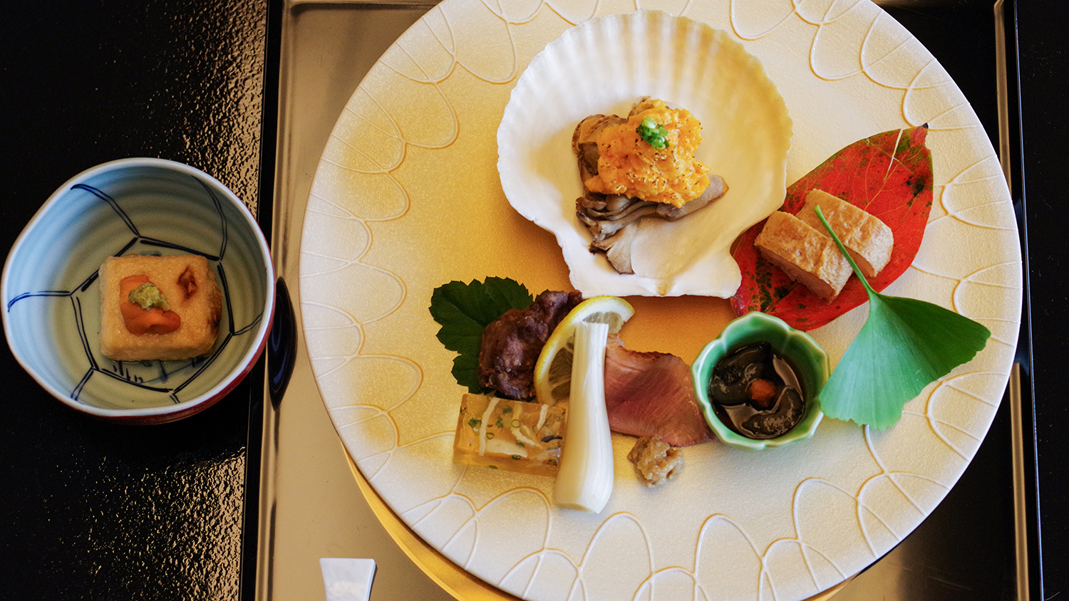 厳選した旬の食材は匠の技で 篭いっぱいに。 瑞月のご夕食最初の一品です。