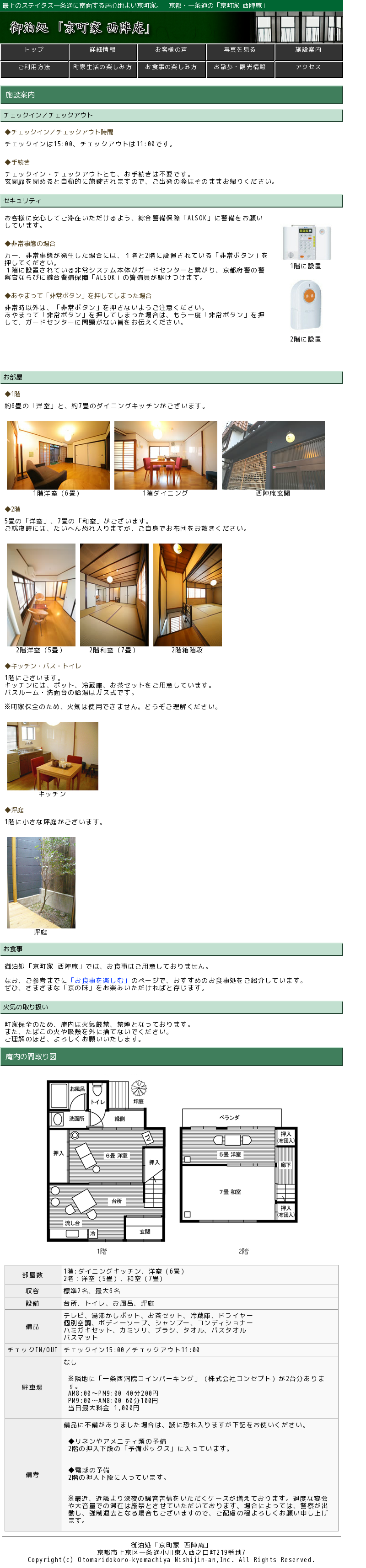 御泊処 「京町家 西陣庵」 施設案内