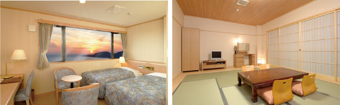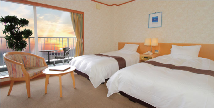 スタンダードツインよりひとまわり余裕のある室内は、リラックス感がただよう落ち着きのあるインテリア。お部屋からの景色とゆったりとしたベットでお寛ぎいただけるお部屋です。