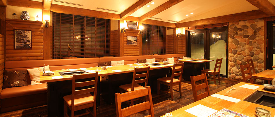 北の味覚を鉄板焼と鍋料理で堪能。 北海道の味覚を豪快にお楽しみいただけるヌプリは、木と石を使った山小屋風の空間。 素朴なぬくもりを感じさせます。
