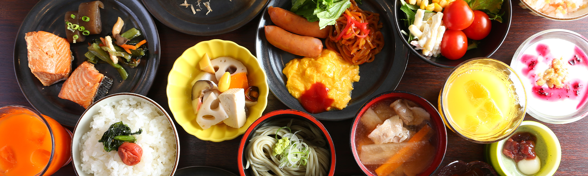 法華クラブグループでは、地域の特色を生かした朝食バイキングでお客様をお迎えしております。