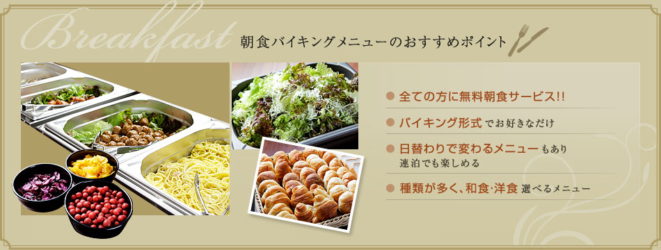 ビジネスでの連泊の際にも毎日楽しみながら朝食をご利用いただけます。