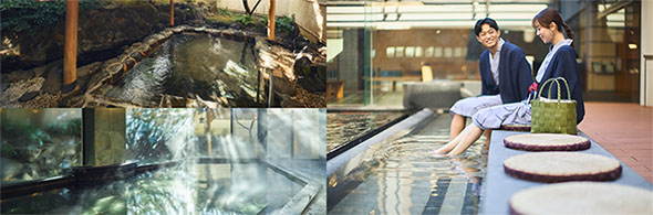 東郷平八郎帥がこよなく愛した湯を注ぐ「健身湯」を思いおもいに楽しめる大浴場、露天風呂、家族風呂。家族風呂は24時間ご利用いただけます。また、館内には足湯テラスも。宿に着いたらまずはここで旅の疲れを癒してください。