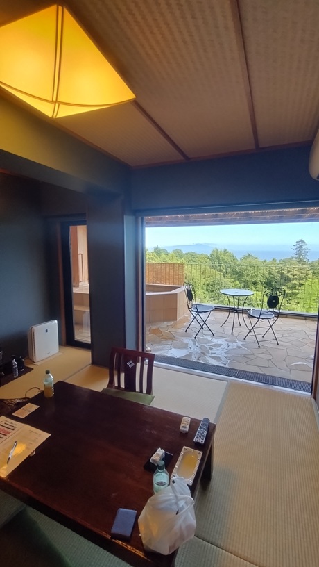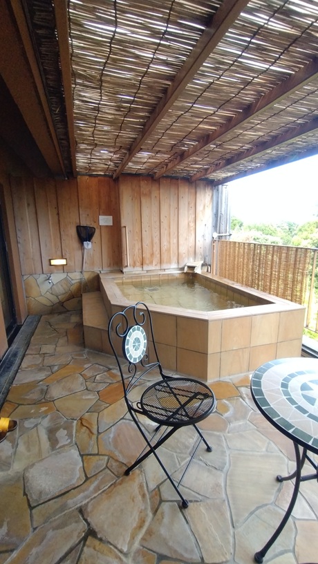 部屋の露店風呂からは大島を眺望でき、とても癒されました。