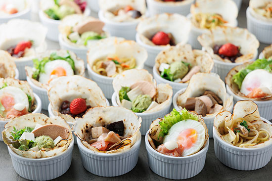 福岡県産の米粉を使用したグルテンフリーのガレットを3種類ご用意。ブッフェの食材を包んで自分だけのガレットをお楽しみいただけます。