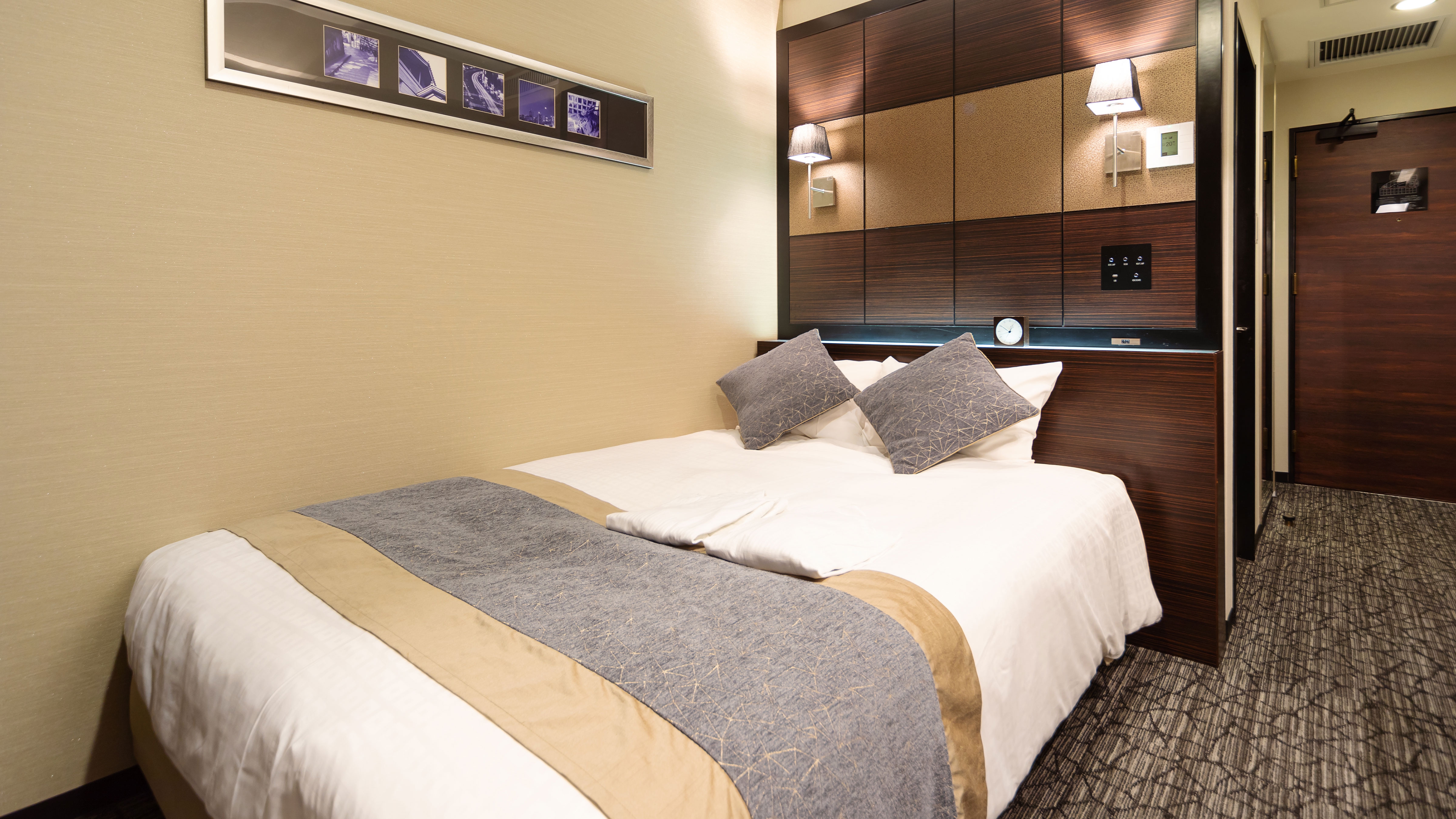 和の装いとモダニズムが融合した『和モダンホテル』。ツインは19平米以上。DXツインは24平米以上でトイレ・バス独立。
