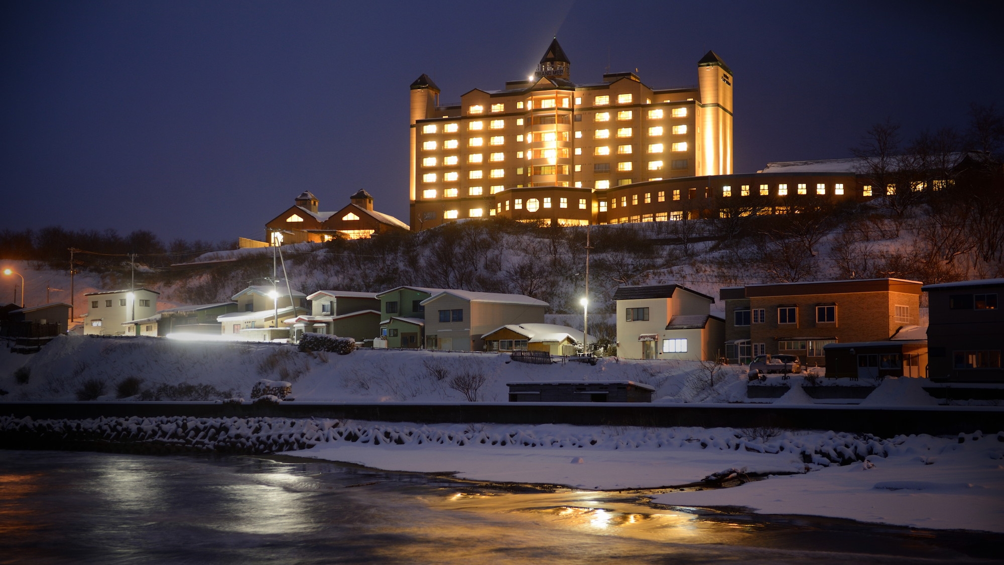岩木山をバックに天然温泉と豊かな自然に囲まれ夏は沈む夕日や漁火が望める高原にスキー場&ゴルフ場を保有しているホテルです。