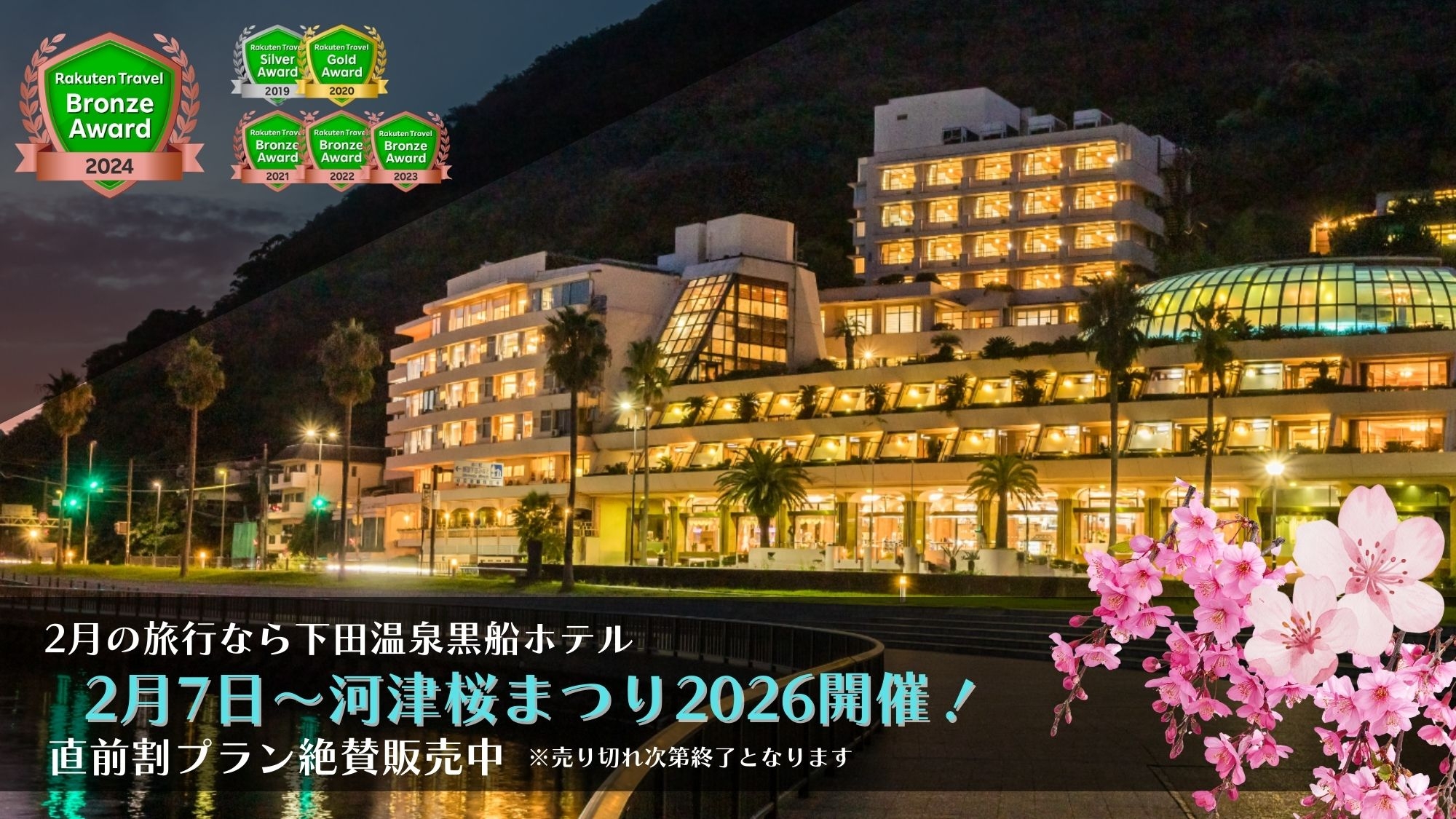 天然温泉100%かけ流しの宿。下田湾に面した全室オーシャンビューです。